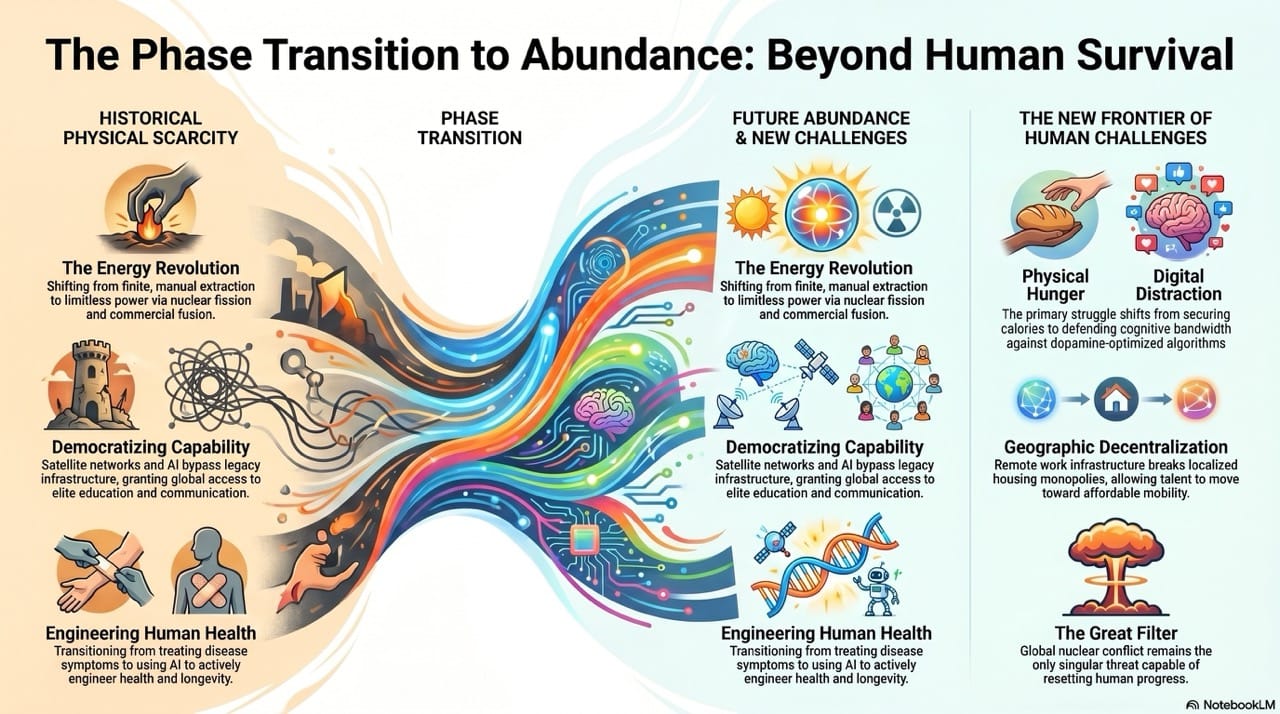 Every previous generation struggled simply to survive the physical elements. The next generation will inherit an unprecedented era of abundant energy and infinite digital leverage.