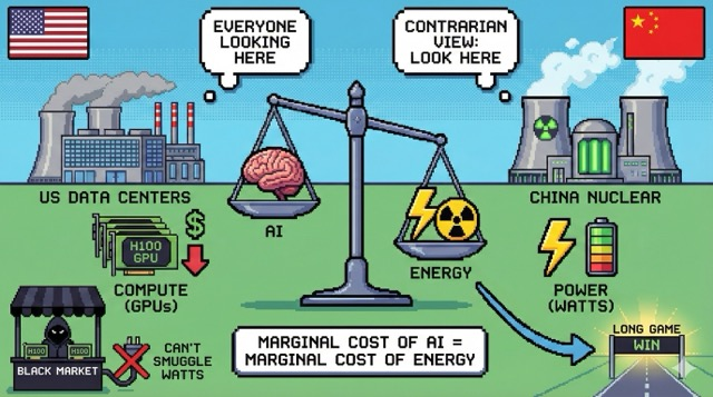 The Risk? If China solves cheap, abundant energy first, they win the long game. You can buy H100s on the black market; you can’t smuggle a gigawatt of power.