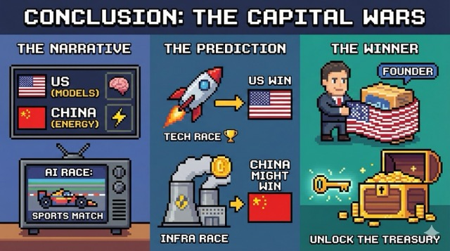 The Prediction: The US will win the technology race (better models). China might win the infrastructure race (cheaper energy).