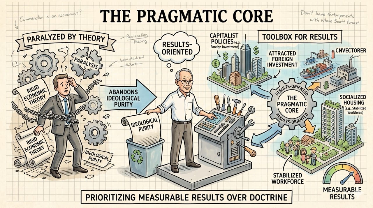 Lee Kuan Yew completely abandoned ideological purity to focus entirely on whatever mechanism produced actual measurable results.