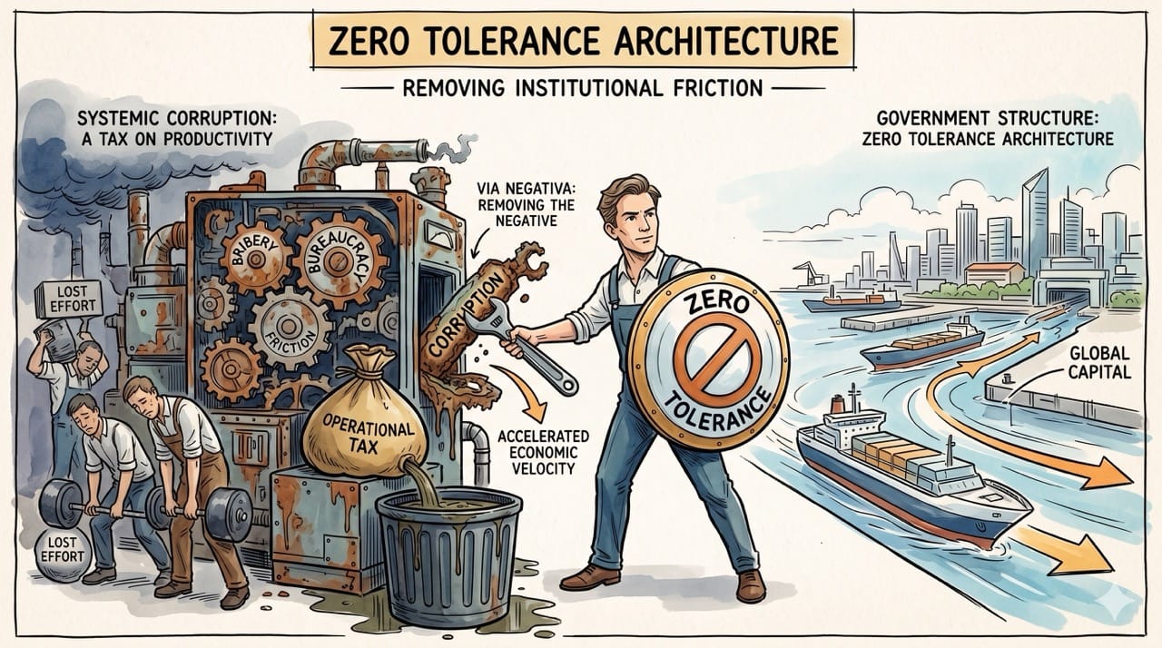 He understood that systemic corruption acts as a massive operational tax on human productivity.