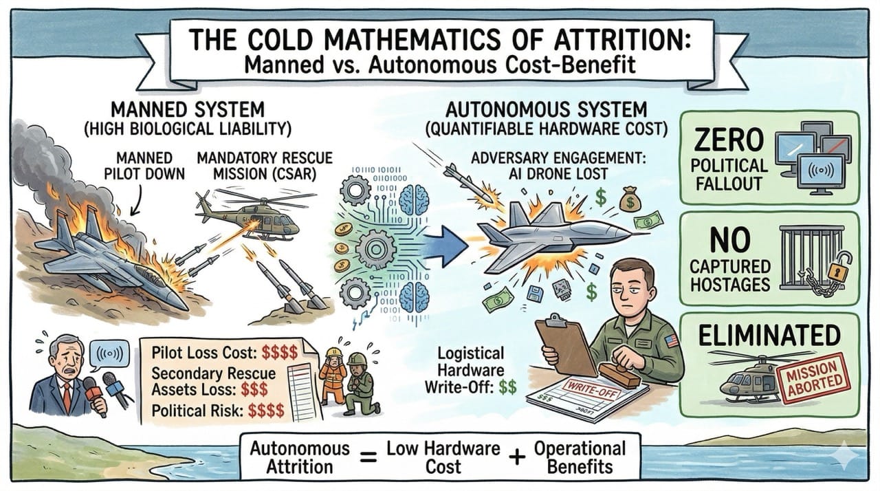 Autonomous wingmen provide the exact same kinetic leverage at a fraction of the financial and political risk.