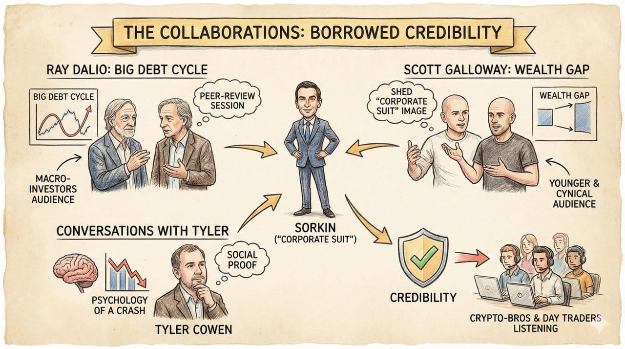 - Scott Galloway: He went on Prof G Markets to debate the "Wealth Gap." Galloway’s audience is younger and cynical. Sorkin used this to shed his "Corporate Suit" image and show he understands the rigged system.