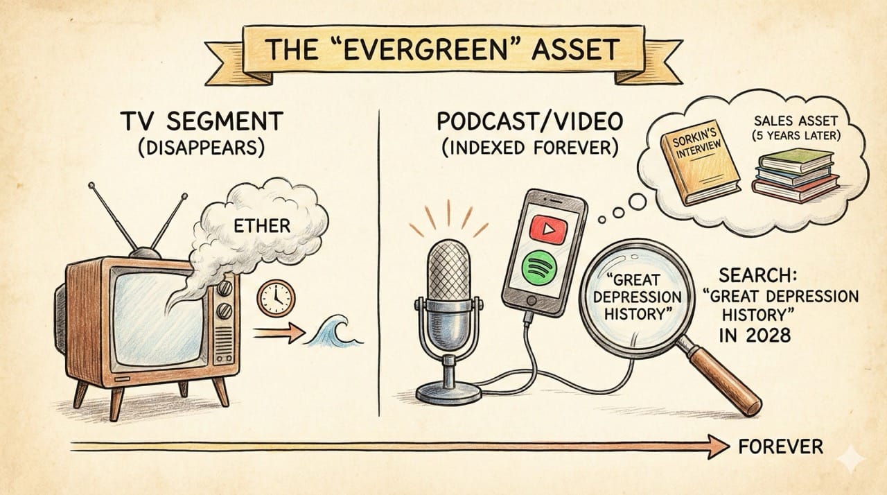 - Someone searching for "Great Depression History" in 2028 will find Sorkin’s interview with Lex Fridman.