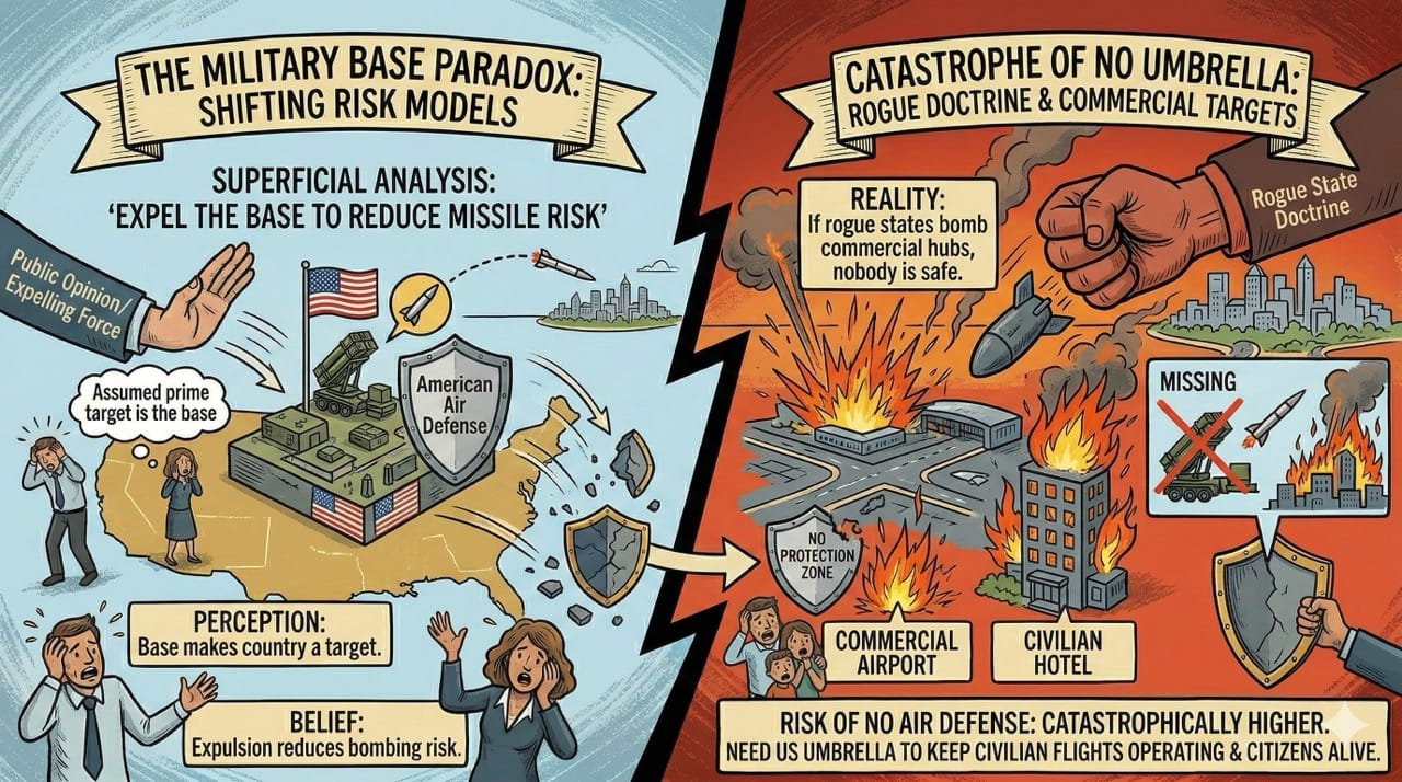 A superficial analysis might suggest that hosting an American military base makes a country a prime target for Iranian missiles.