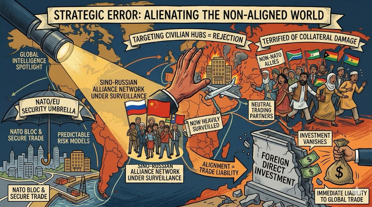By targeting civilian infrastructure, they are rapidly alienating non-NATO allies and neutral trading partners.
