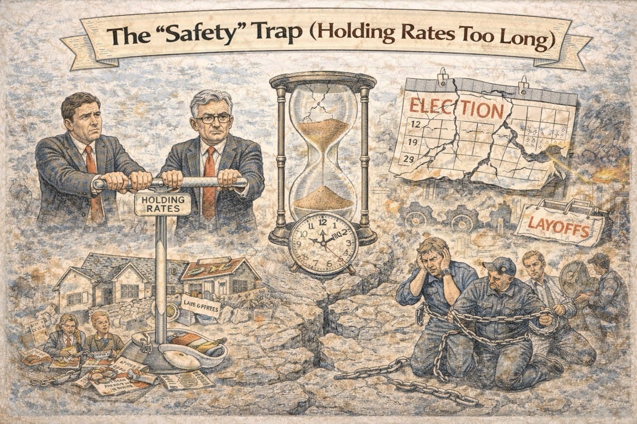 The lag effect of monetary policy is 12–18 months. By the time the data shows a recession, it is too late. The damage is baked in. Holding "Higher for Longer" risks breaking the labor market right before the election.