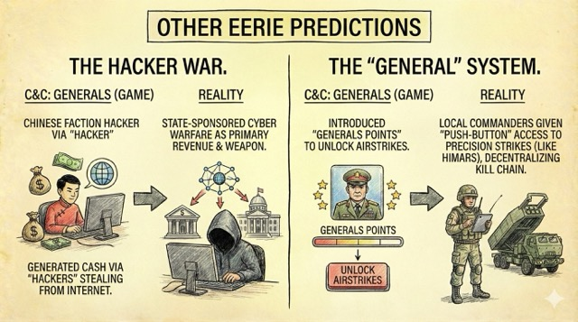 The “General” System: The game introduced “Generals Points” to unlock airstrikes. In modern warfare, local commanders are increasingly given “push-button” access to precision strikes (like HIMARS), decentralizing the kill chain.
