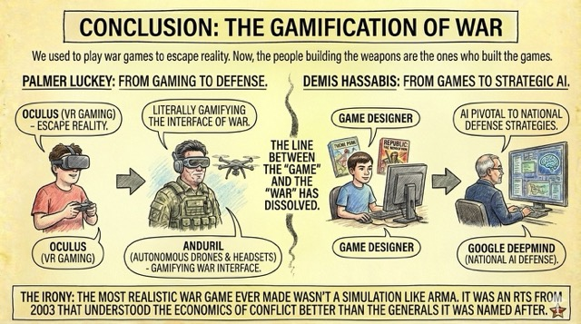 Look at Palmer Luckey. He founded Oculus (VR gaming) and now runs Anduril, building the “Eagle Eye” headset and autonomous drones. He is literally gamifying the interface of war.