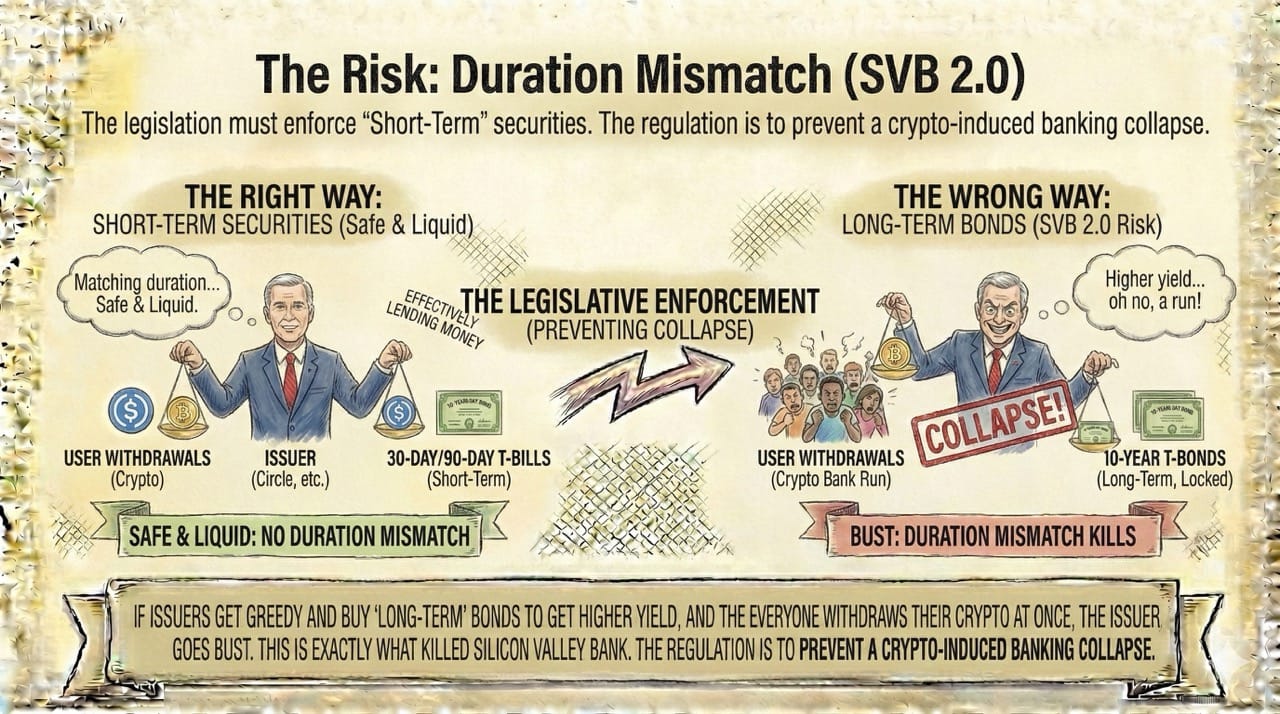 This is exactly what killed Silicon Valley Bank. The regulation isn't just for safety; it's to prevent a crypto-induced banking collapse.