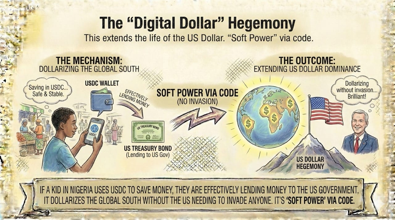 It dollarizes the Global South without the US needing to invade anyone. It’s "Soft Power" via code.