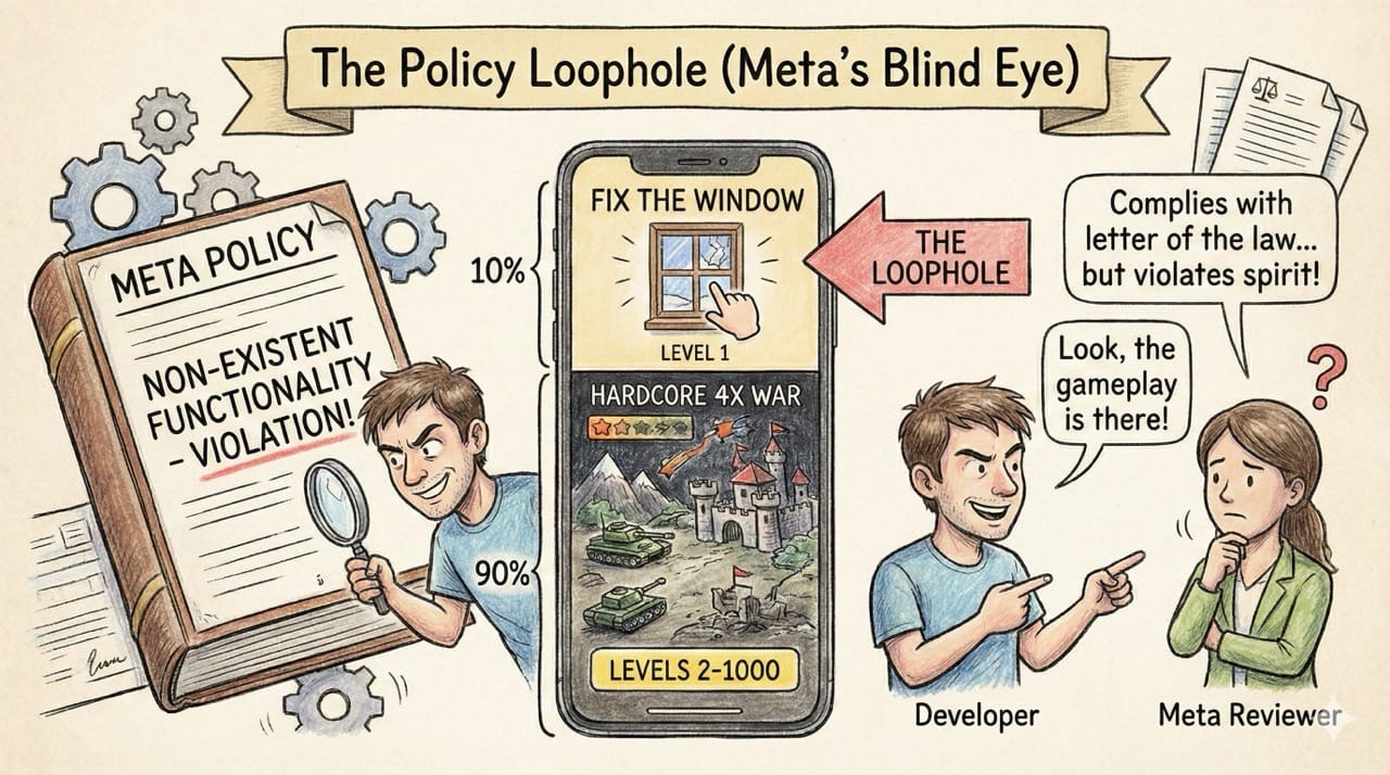 When Meta’s reviewers check, the developer says: "Look, the gameplay is there!" It complies with the letter of the law, but violates the spirit of the user experience.