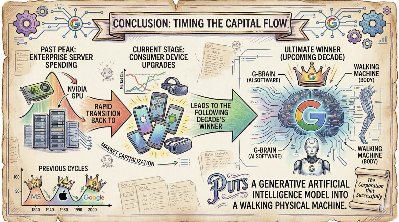 The market capitalization crown is currently passing from Nvidia to Apple and Google. Understanding this macroeconomic cycle is the key to predicting the upcoming physical robotics boom.