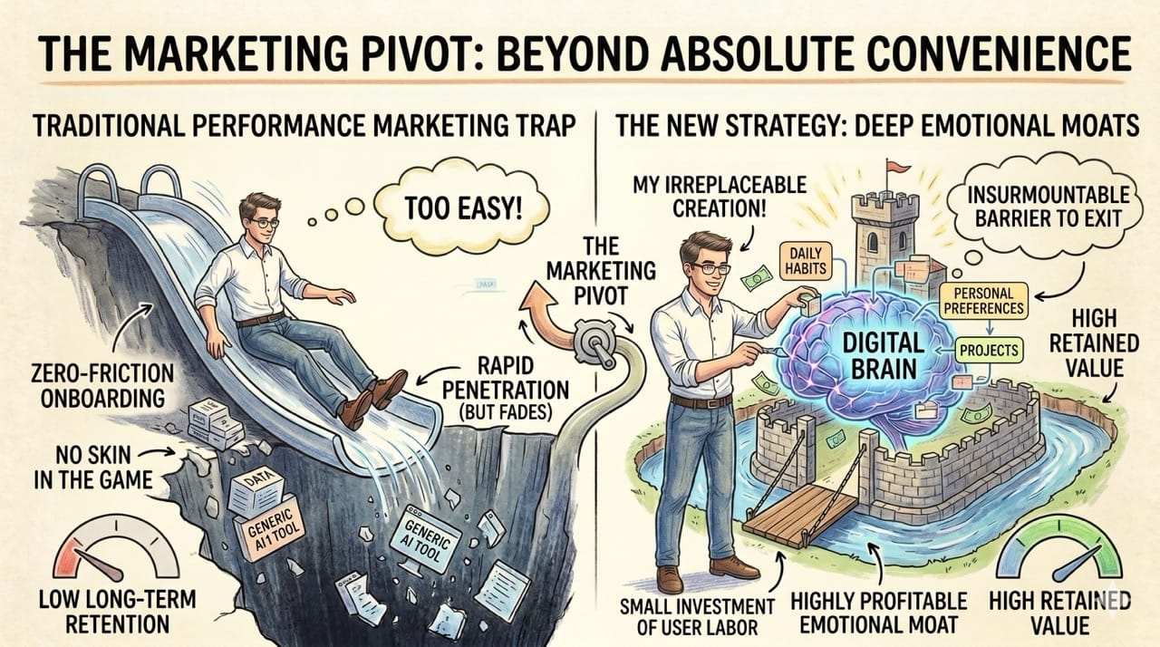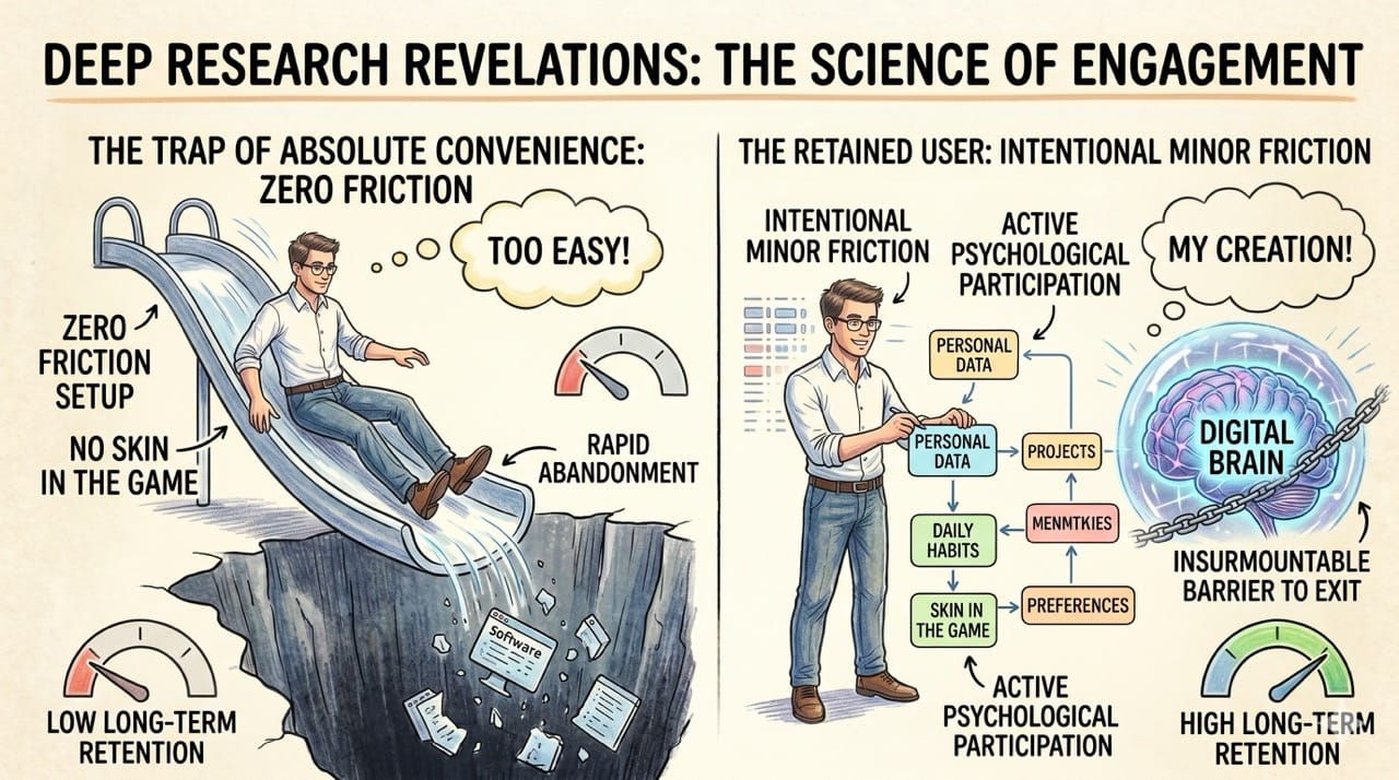 Absolute convenience is a trap that destroys long term retention. The most successful software companies are intentionally forcing users to assemble their own digital brains.