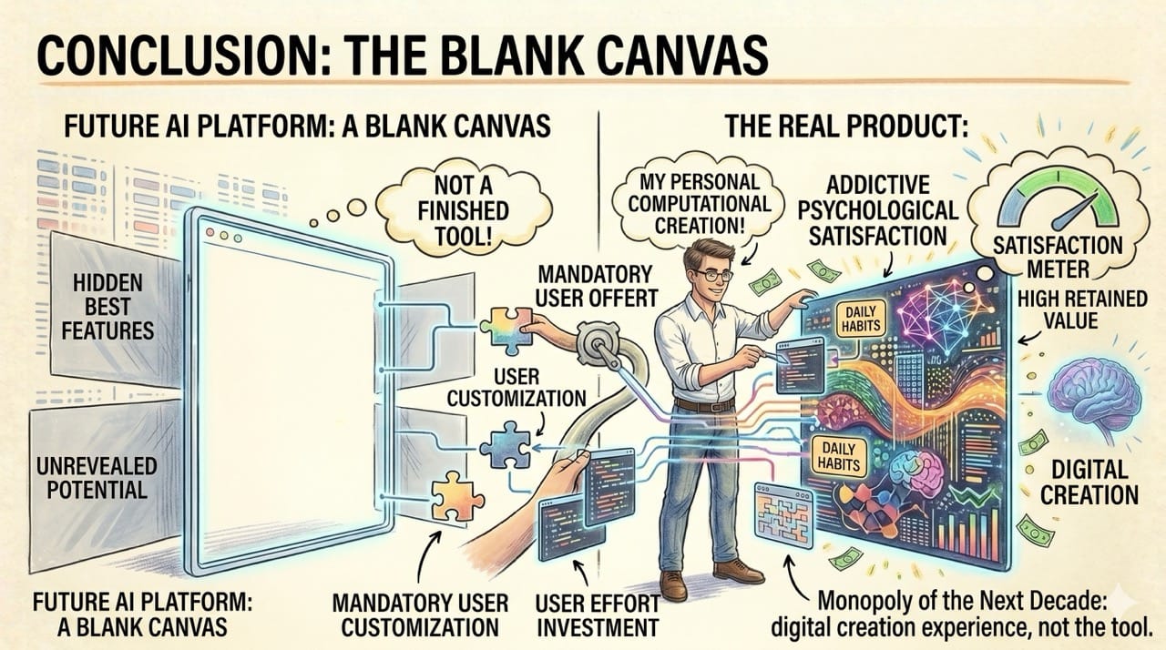 The software monopolies of the next decade will not sell finished tools, but rather the highly addictive psychological satisfaction of digital creation.