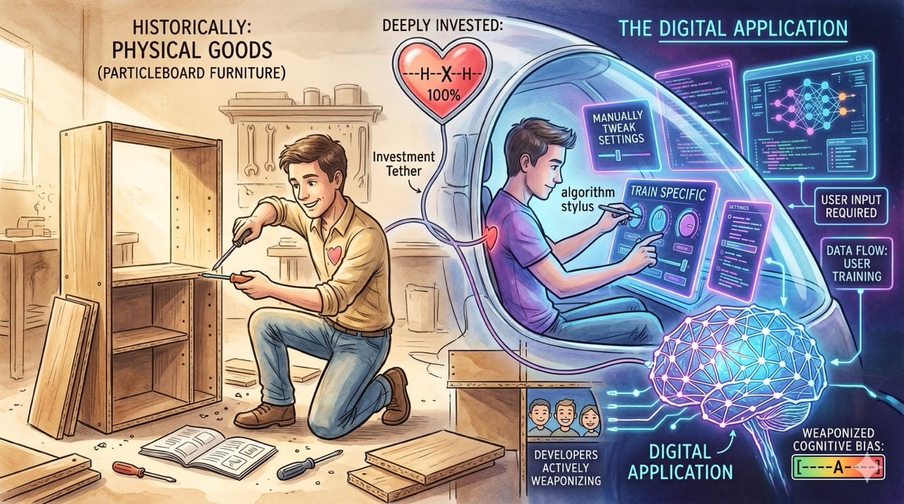 Historically, this psychological phenomenon was strictly limited to physical consumer goods like cheap particleboard furniture.