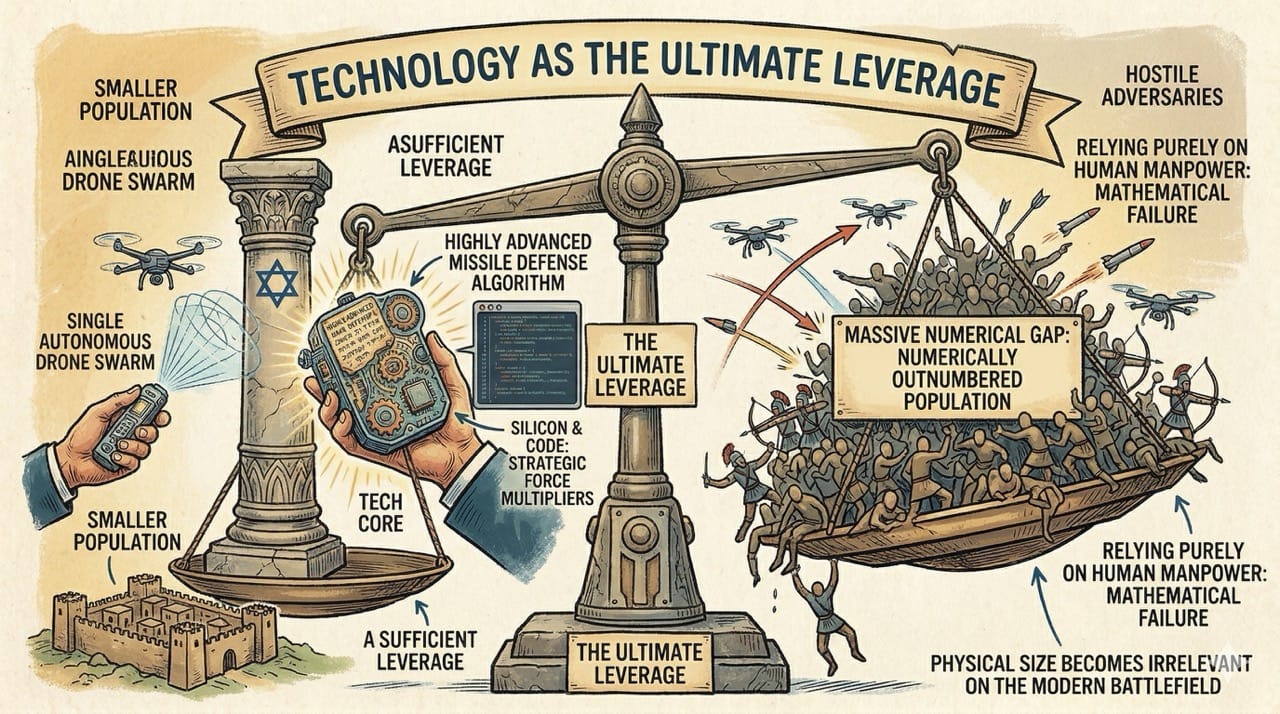 Silicon and code become strategic force multipliers that make physical size completely irrelevant on the modern battlefield.