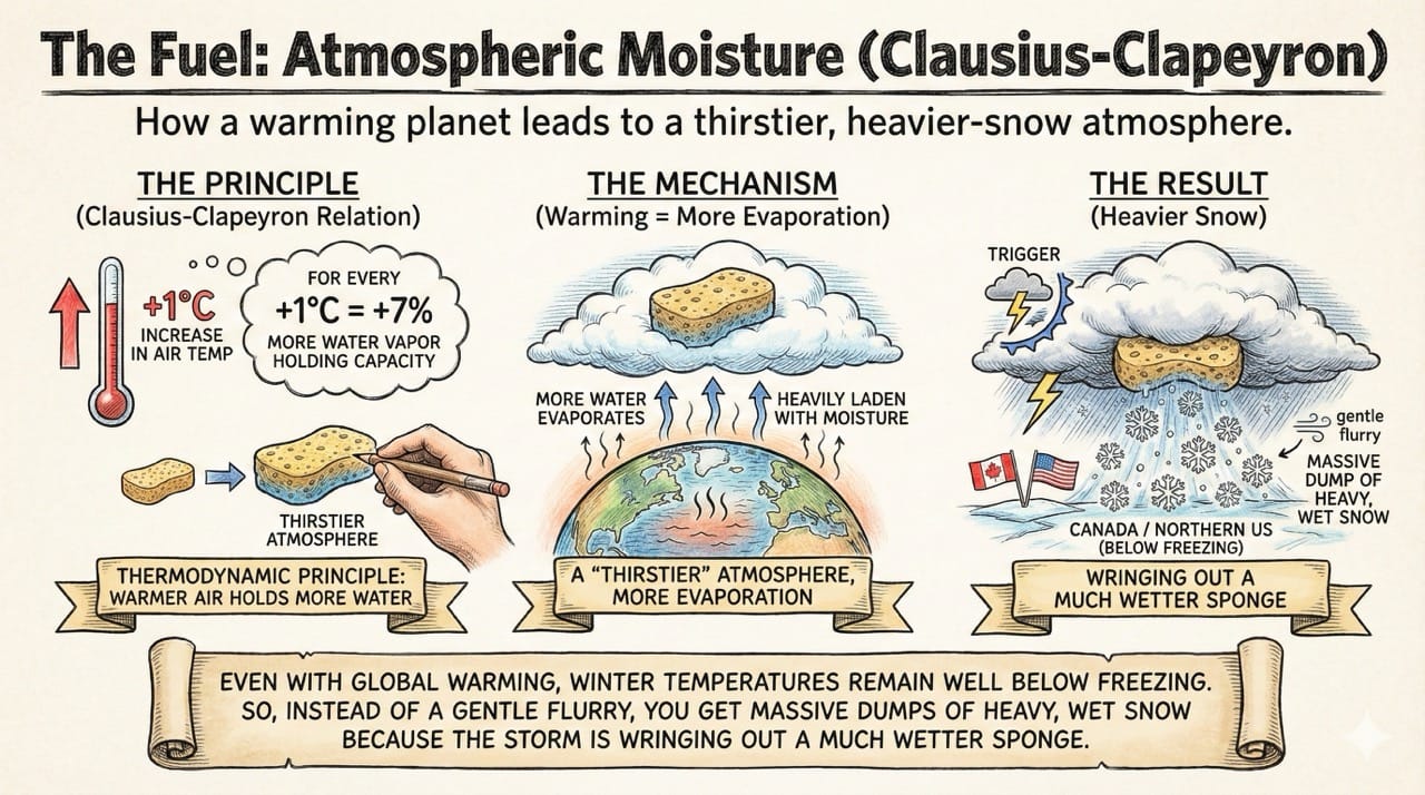 Here is the scientific breakdown of why a hotter planet produces deeper snow.