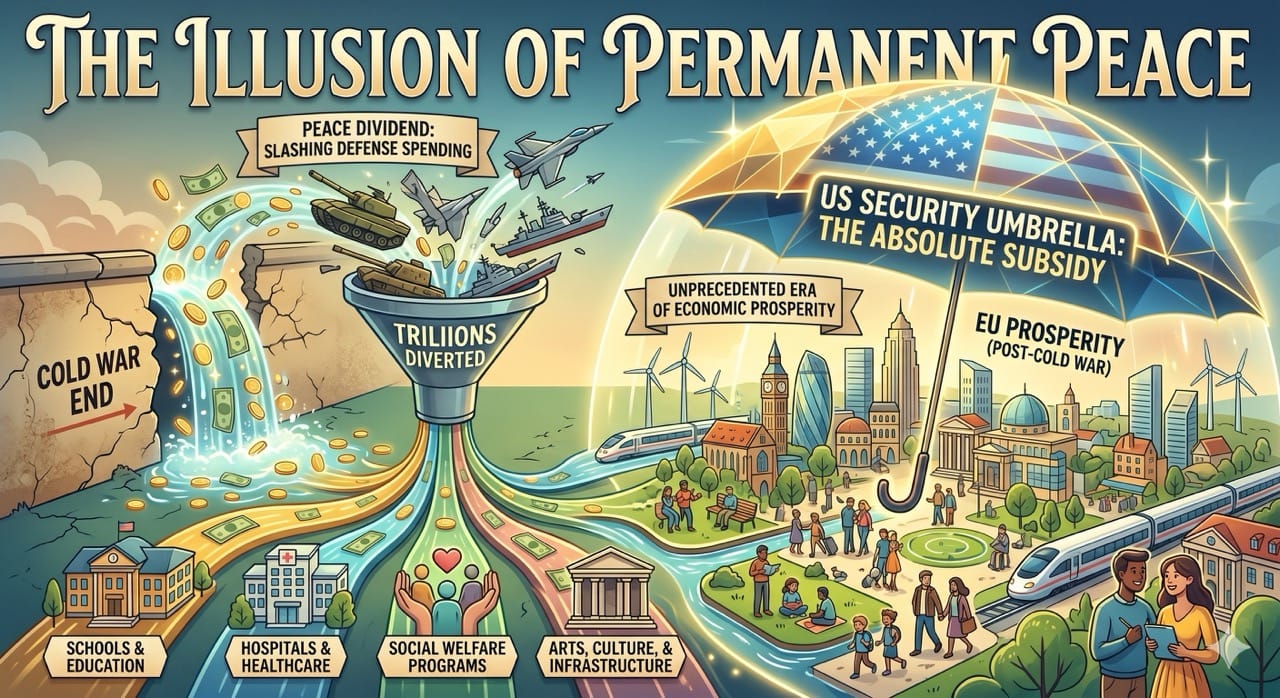 We assume the collapse of the Soviet Union guaranteed permanent continental peace. In reality, Europe squandered a massive economic windfall by prioritizing bureaucratic expansion over raw industrial defense capacity.