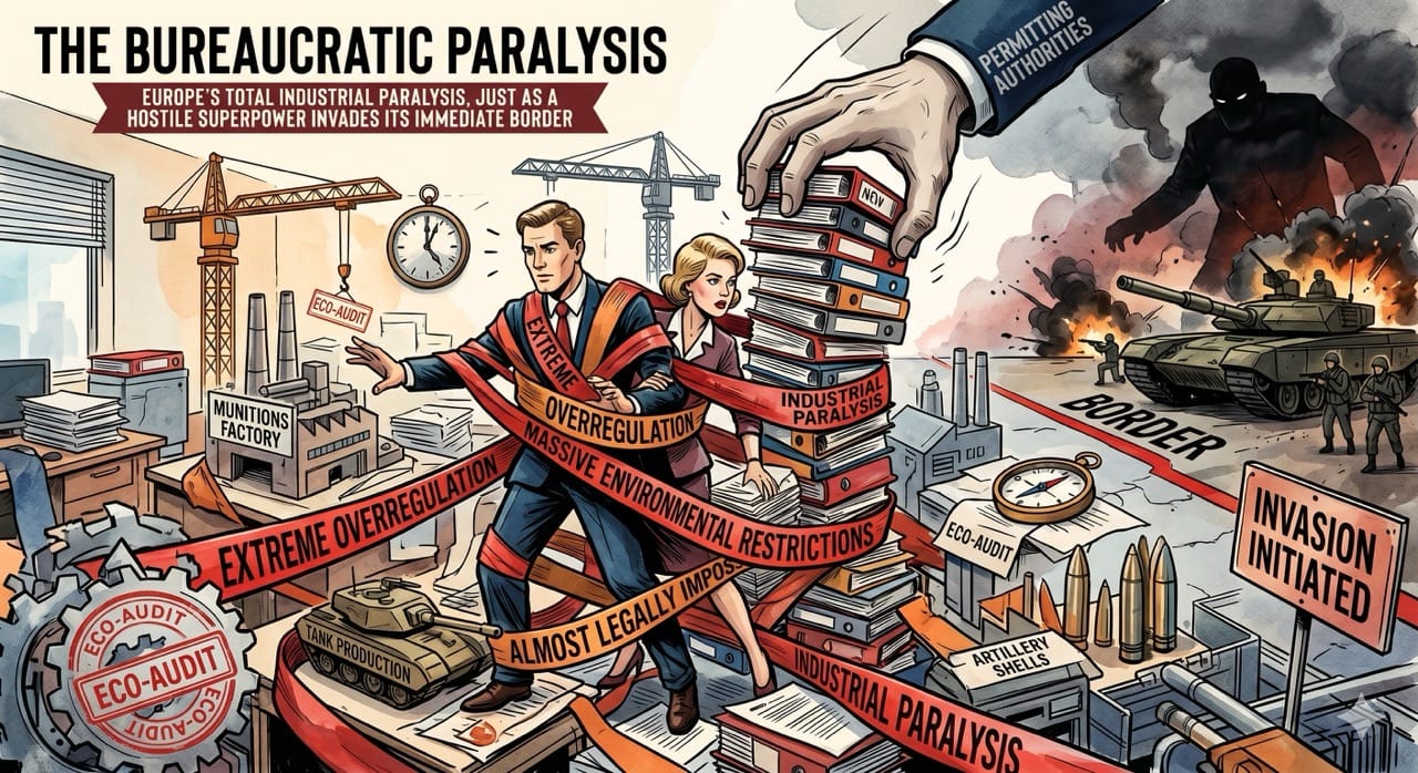 The continent successfully regulated itself into total industrial paralysis just as a hostile superpower invaded its immediate border.