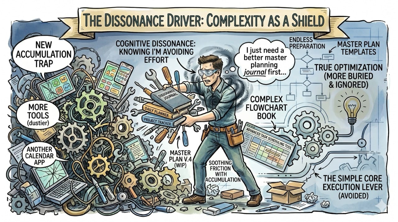 We attempt to soothe this mental friction by endlessly preparing and adding complex steps instead of simply executing the core task.