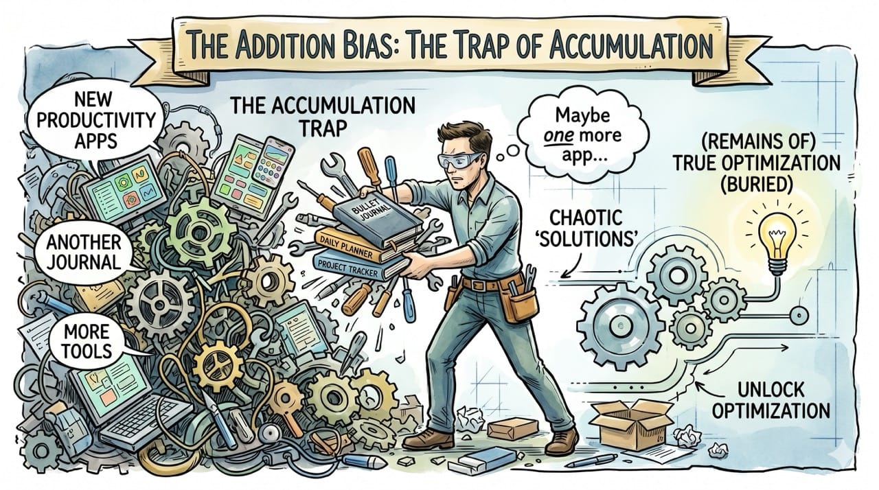 Human psychology is fundamentally wired to solve problems by aggressively adding new elements to our lives.