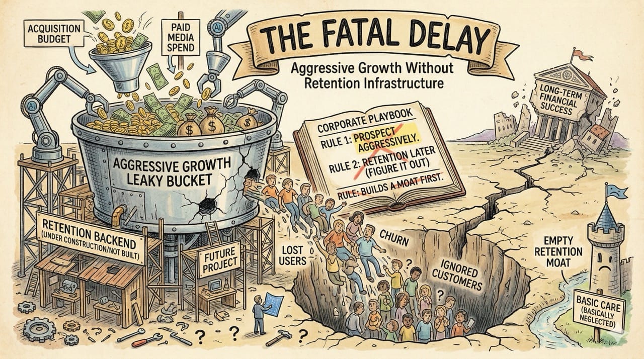 Inspiration: Analyzing the fatal disconnect between massive paid media budgets and neglected retention infrastructure. Realizing that as artificial intelligence commoditizes prospecting, true enterprise value will be generated entirely by unmeasurable customer delight.