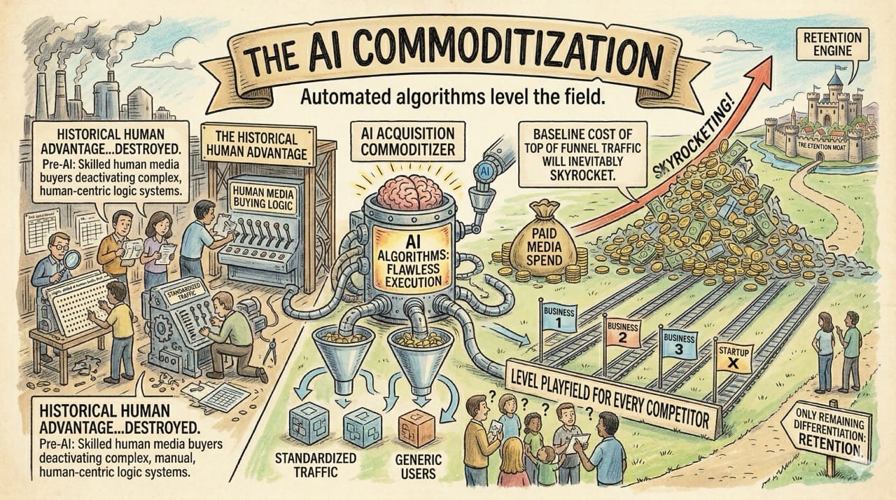 When algorithms flawlessly level the acquisition playing field for every competitor, the baseline cost of top of funnel traffic will inevitably skyrocket.