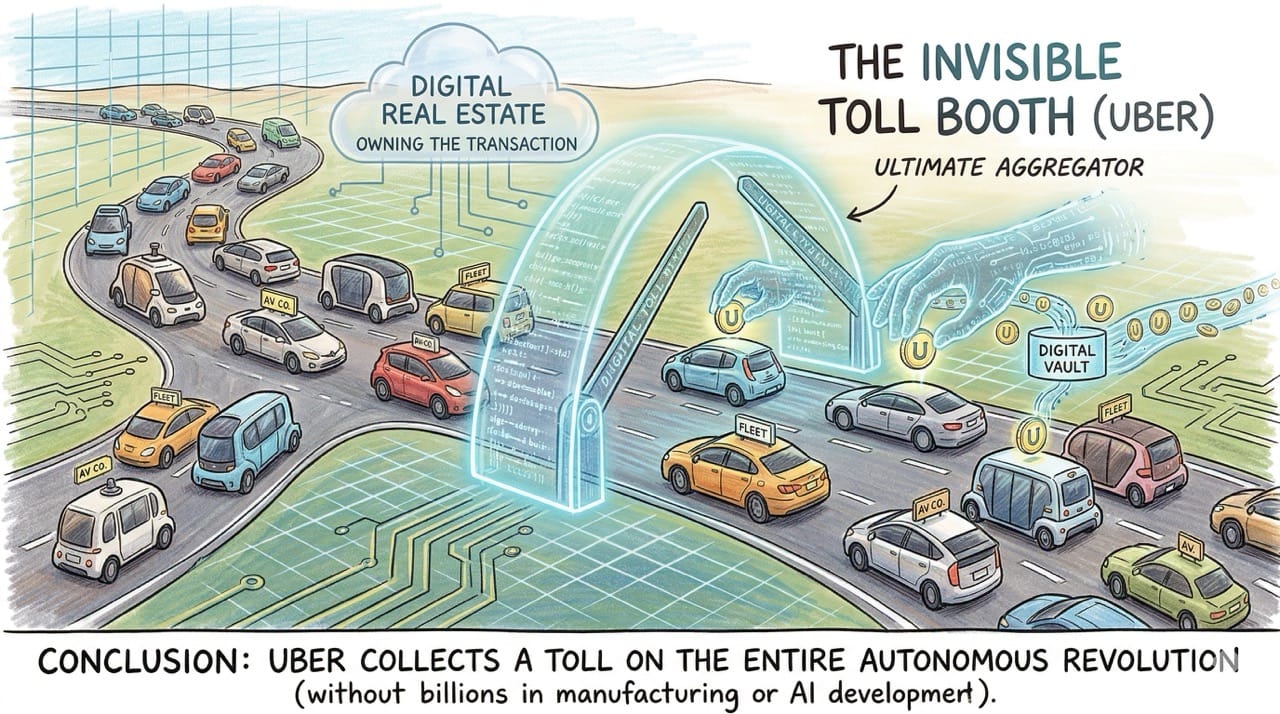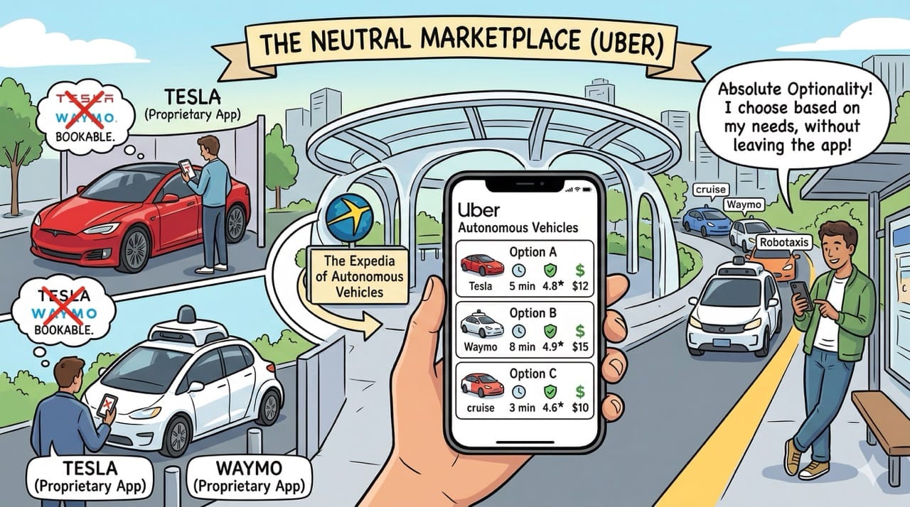Wall Street assumes that proprietary robotaxis will completely destroy the traditional ride hailing model. In reality, Uber is perfectly positioned to become the ultimate and indispensable aggregator for the entire autonomous vehicle industry.