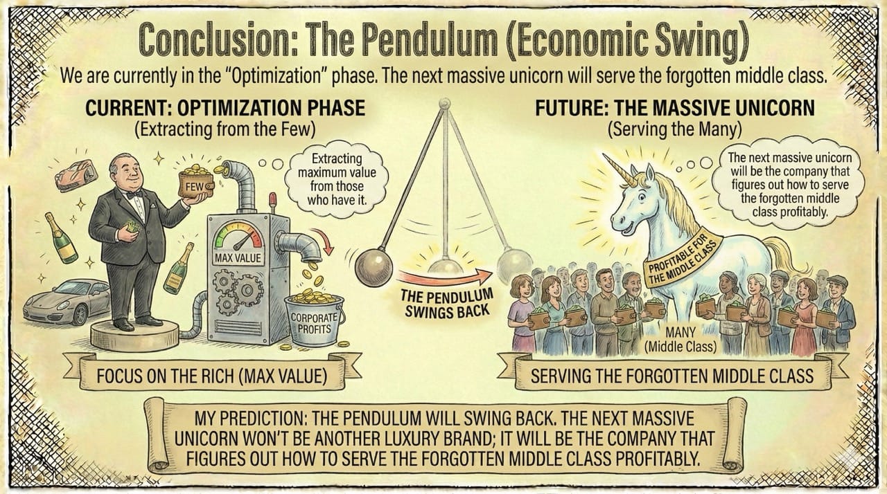 My Prediction: The pendulum will swing back. The next massive unicorn won't be another luxury brand; it will be the company that figures out how to serve the forgotten middle class profitably.