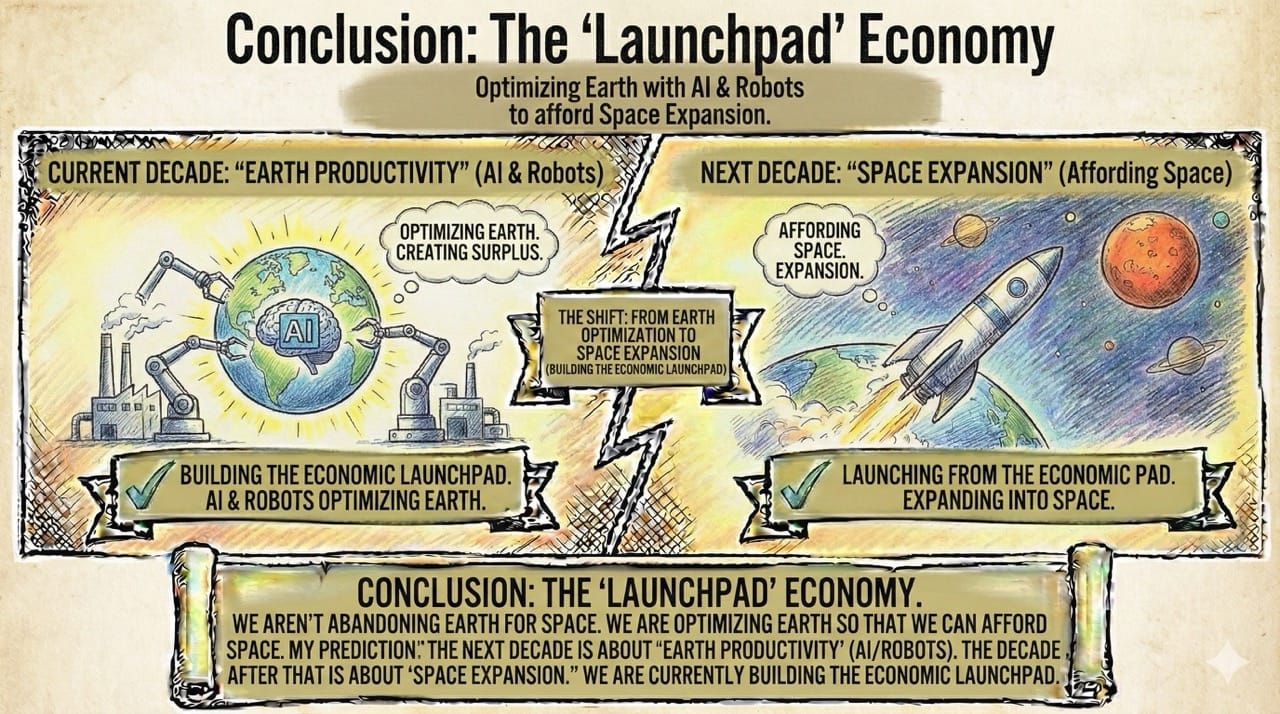 My Prediction: The next decade is about "Earth Productivity" (AI/Robots). The decade after that is about "Space Expansion." We are currently building the economic launchpad.
