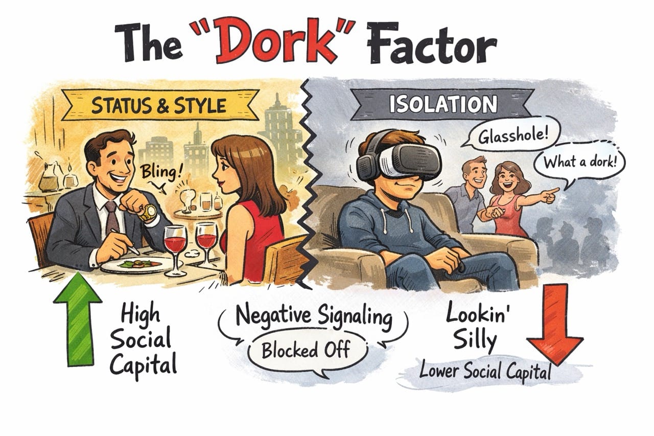 If I buy a $3,500 watch, I wear it to dinner. People see it. It enhances my social standing. If I buy a $3,500 headset, I wear it alone in my living room. If I wear it in public, I don't look rich; I look like a "Glasshole."