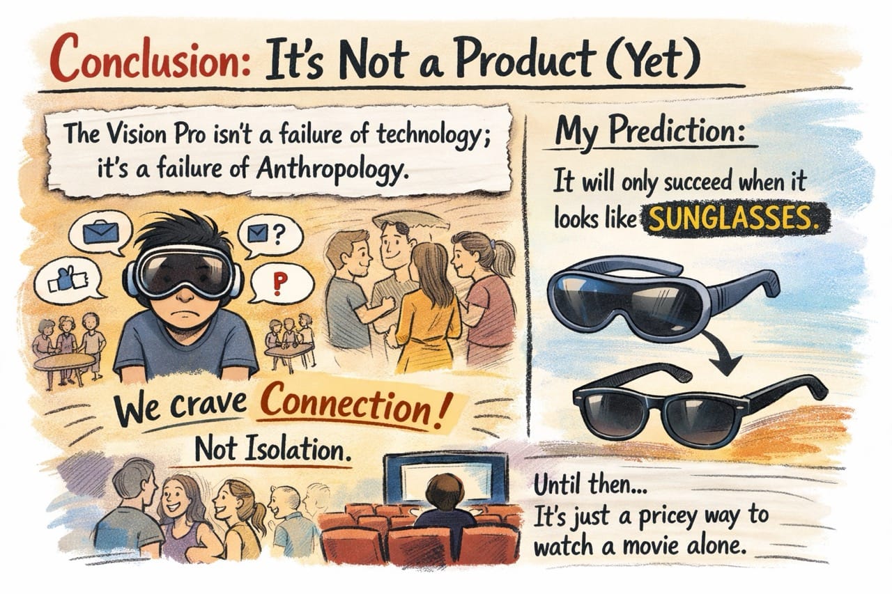 Humans are social animals. We crave connection. A device that covers your eyes—the primary window of human connection—starts with a massive sociological handicap.