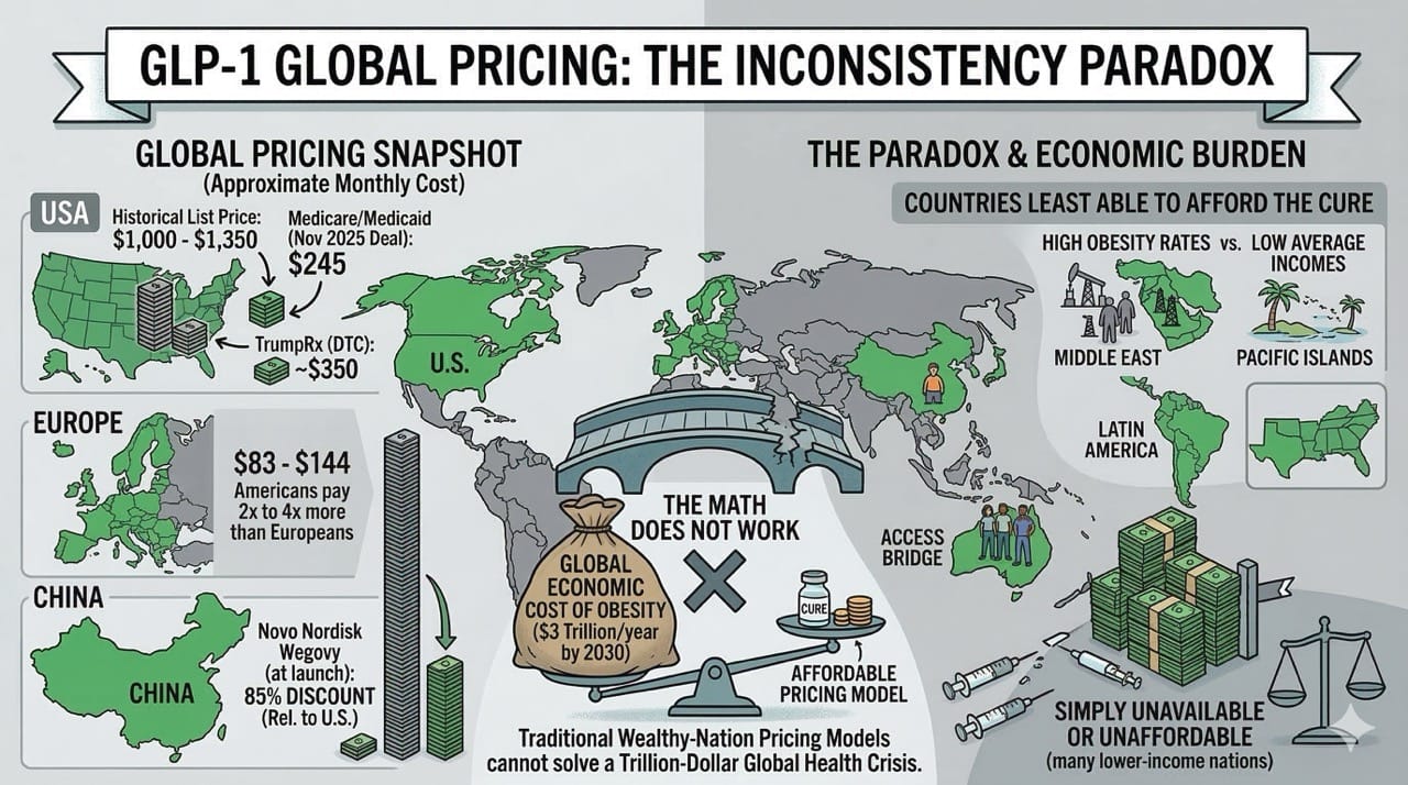 Europe is already ahead here, with GLP-1 prices between $83 and $144 per month across several countries.