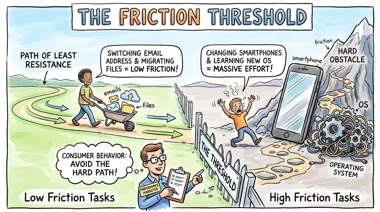 Completely changing physical smartphones or learning an entirely new operating system requires a massive psychological effort that most people will actively avoid.