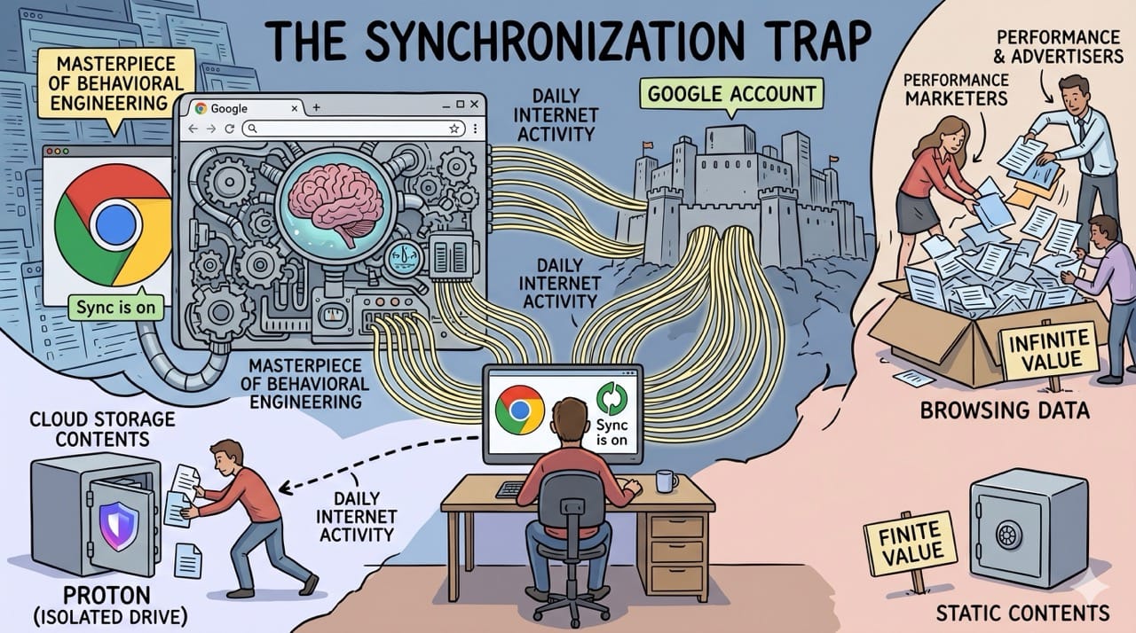 Even if a user transitions their cloud storage to Proton, their daily internet activity remains entirely tethered to their centralized Google account.
