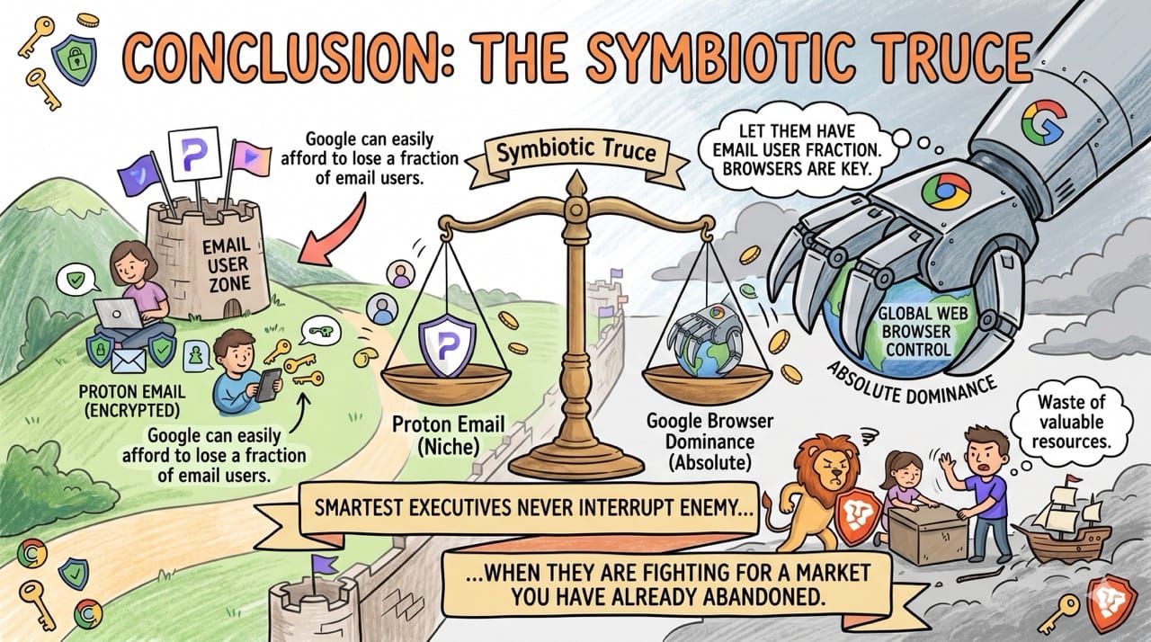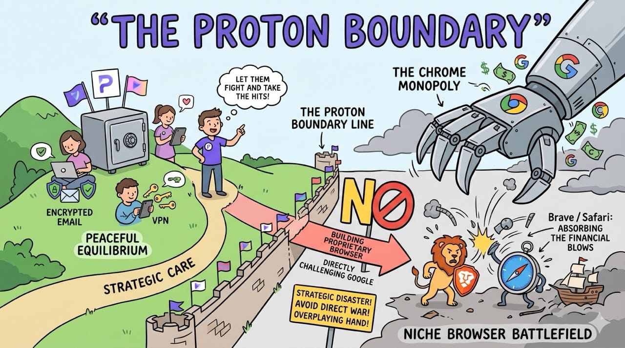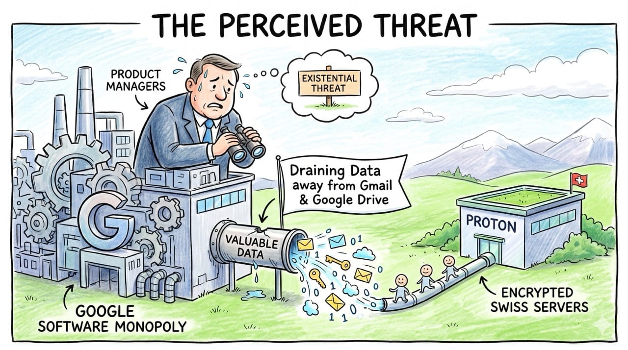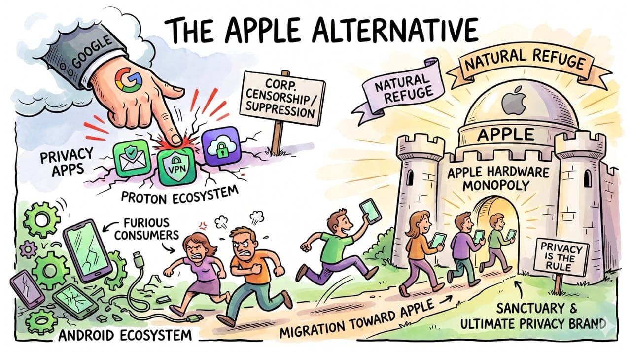 We assume massive technology monopolies must aggressively crush any emerging competitors in the software space. In reality, Google absolutely needs the Proton ecosystem to thrive to prevent a massive consumer exodus toward Apple hardware.