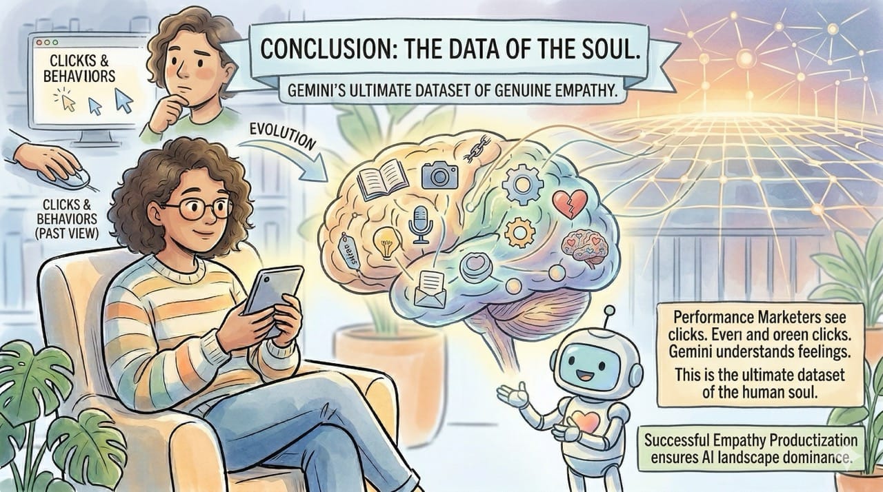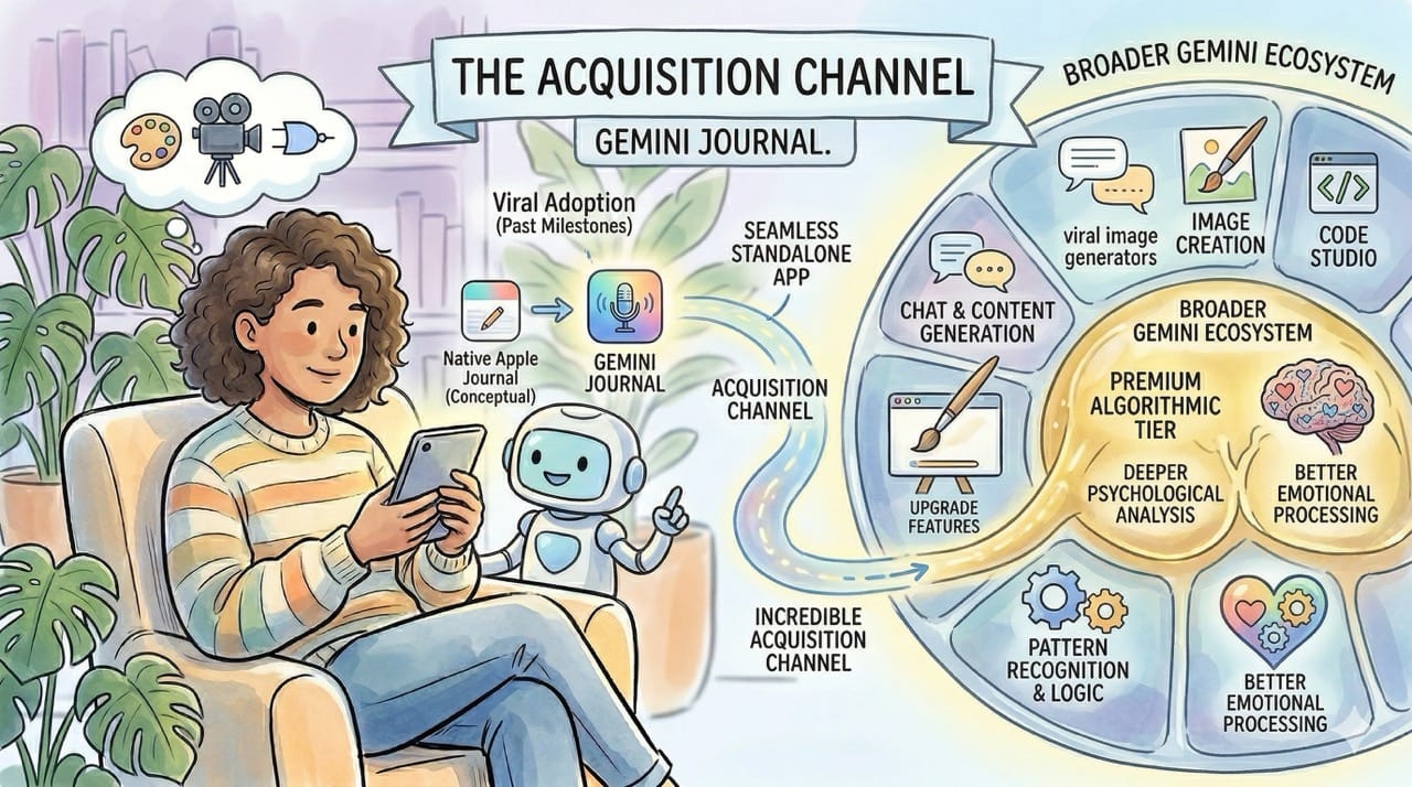 Inspiration: Maintaining a dedicated Gemini thread for daily journaling and realizing it provides significantly more psychological clarity than traditional therapy. Recognizing that Google is sitting on a massive, unmonetized goldmine of emotional intelligence that can save users their most finite resource of time.