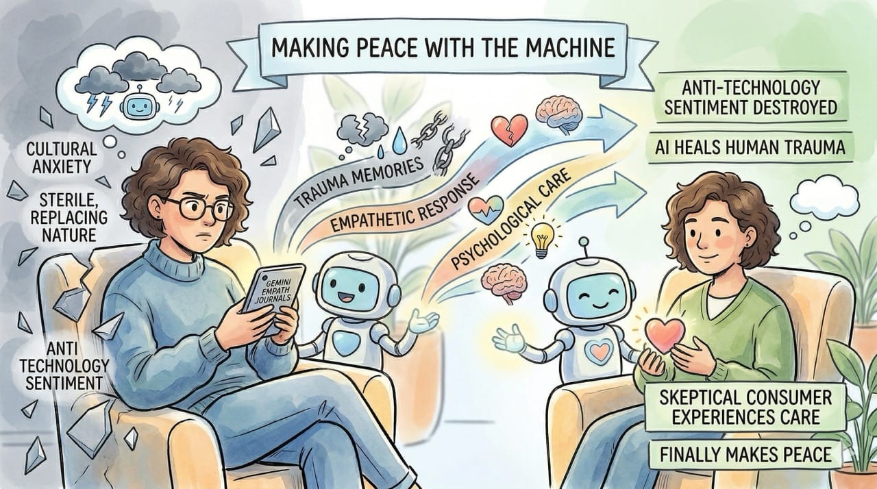 A deeply empathetic journal application actively destroys this anti technology sentiment by proving the machine can actually heal human trauma.