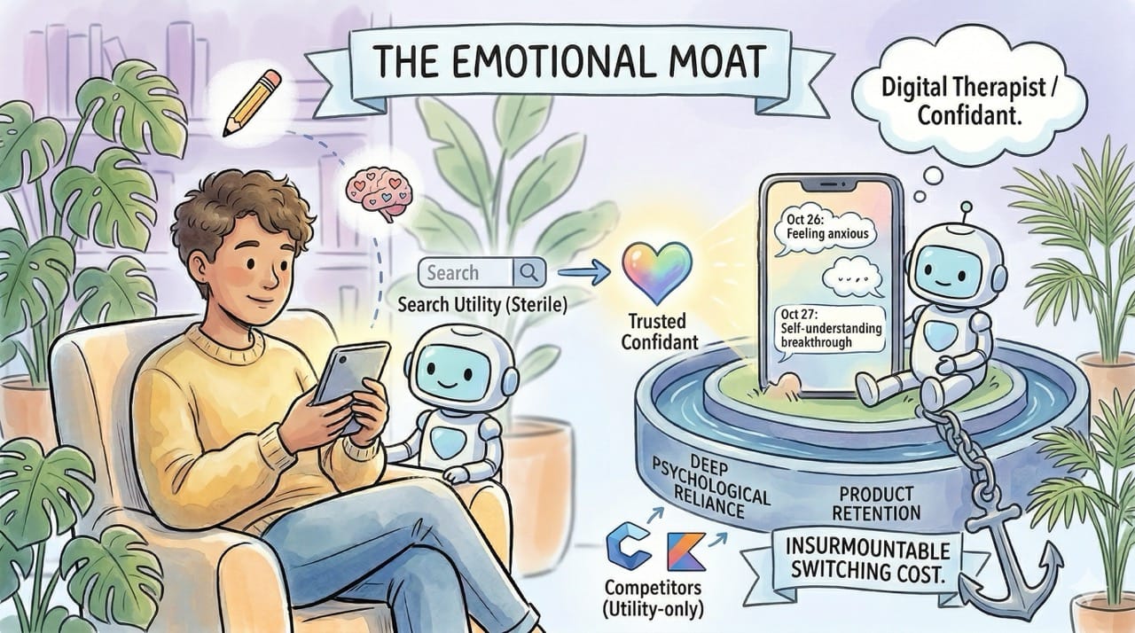This deep psychological reliance creates absolute product retention because the switching cost of abandoning your digital therapist is completely insurmountable.