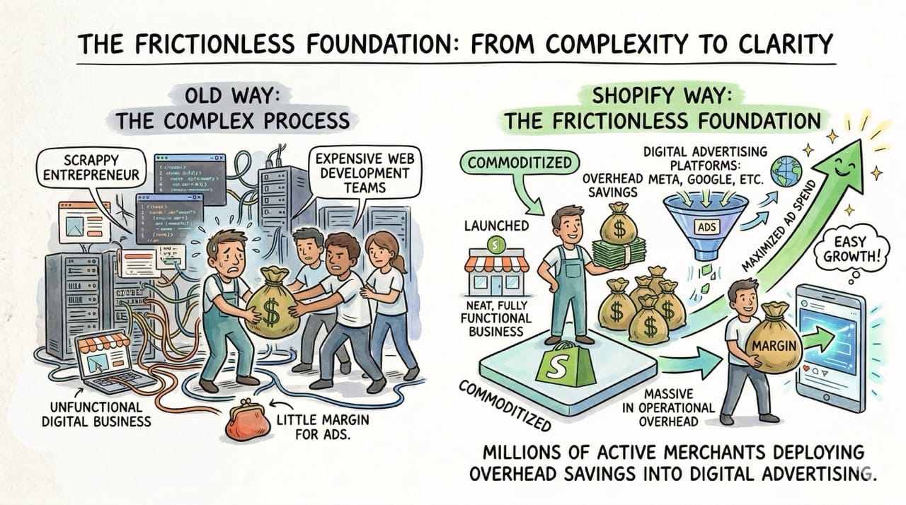We assume major advertising platforms rely primarily on massive enterprise budgets for their sustained revenue growth. In reality, their ultimate cash flow depends entirely on the frictionless creation of millions of scrappy Shopify merchants.