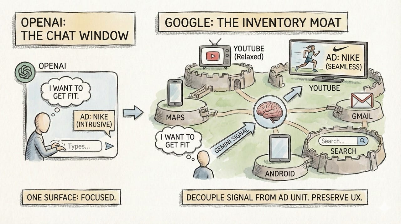They can decouple the "Signal" (Gemini) from the "Ad Unit" (YouTube), preserving the user experience while monetizing the data.